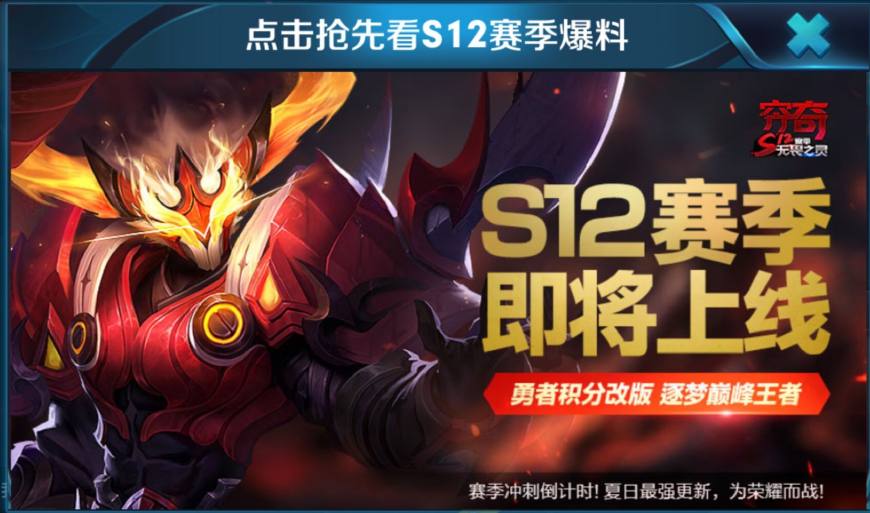 还有就是S12赛季即将上线,已经开启了倒计时模式,海报还没倒计时多长时间,但小仙女知道,七月八号就是王者荣耀S12赛季上线的具体时间。相信大家对S12赛季的奖励皮肤都有所耳闻吧,没错那就是典韦-穷奇皮肤。这也是无畏之灵的最后一款皮肤了。