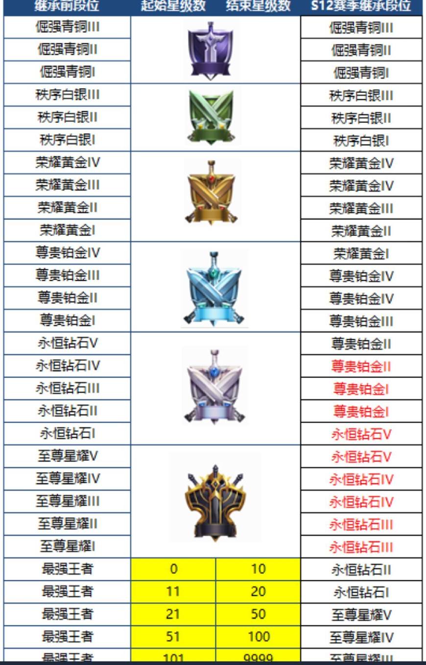 话不多说咱们直接进入话题,首先S12赛季上线之后,段位将会有大幅度降低,尤其是目前的星耀段位和王者段位,掉段最厉害。王者局0-10颗星的直接掉到钻石2段位。星耀一的直接掉到钻石三,相当于来说掉了整整一个段位。大家应该都明白,钻石和星耀局,上一小段都是五星,分5个小端,也就是说掉了整整25颗星最少。其实段位掉到哪里都无所谓,只要你技术够硬,想要打回最强王者段位也是轻而易举的事。