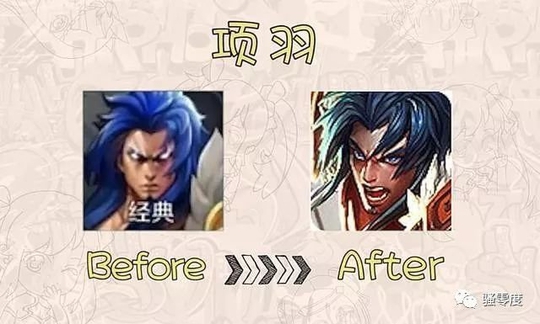 新版的项羽看起来则要霸气一些,虽然模型很笨重,但头像还是有横扫千军的气魄的。这一轮的比拼,新版的项羽获胜,项羽整容成功。