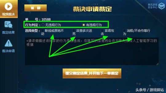 目前鹰眼护卫队仅适用巅峰赛的裁决,未来还将推广至其他模式,操作流程方面也相对简单,即通过对局参考信息、聊天记录和视频对玩家是否违规进行判定,若确定违规的话还需要选择违规类型和描述具体违规内容,如下图所示: