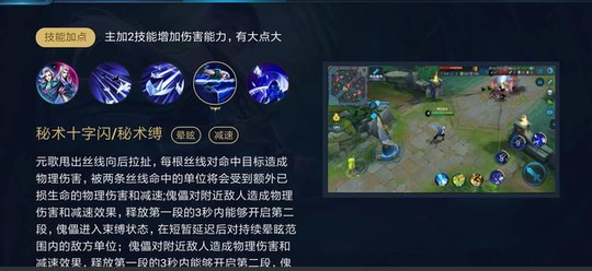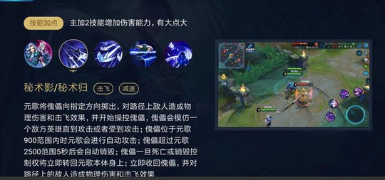 元歌将傀儡向指定方向丢出造成物理伤害和击飞效效果,距离元歌900自动攻击25005秒消失。傀儡一但死亡就会转回元歌身体,并且路劲上遇到敌人也会造成伤害和眩晕。