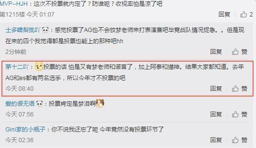 而且也是有网友在官方微博下留言吐槽:这次不投票就内定了?放谁呢?收视率怕是要凉了吧!投票的话,估计梦老师和诺言又要上榜了,去年AG和ES都有两名选手。所以今年才不投票?
