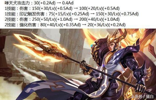 杨戬也是被削的一个英雄,提高了哮天犬的输出,但是削弱了自身的伤害,但是打伤害杀人还是要靠自身的伤害,还好杨戬本来就非常强势,还能接受。