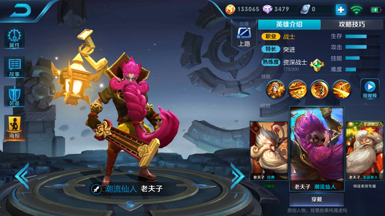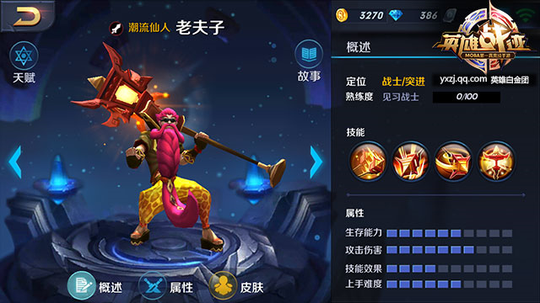 在王者荣耀中老夫子是一名无蓝耗控制型战士英雄,没重做前老夫子操作性比较简单,被动普攻叠攻速,第三下会触发额外的伤害,一技能跳英雄跳野怪小兵,用来切人。二技能开启免疫物理攻击结束之后会造成眩晕,大招加双抗以及加攻速,虽然这个英雄单挑很强,但是很吃装备,一个太依赖装备的英雄,随着游戏节奏快很难给你拖到后期的机会,前期一崩,这个英雄就废了,何况还是依靠普攻去打伤害的英雄呢?