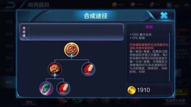 在这里小仙女想问问在座的各位,有哪几个玩家知道,极影装备在哪个位置里,估计也就只有玩辅助英雄的个别玩家才知道吧,没错这件装备是辅助装备,一般是用来团战乘势追击或者逃生使用。极影装备的属性是增加1000点的生命值,和10%的移动速度。最让人值得关注的是,极影装备可以让全队的技能冷却缩减,而且当自己是玩辅助英雄经济低的时候,如果出了极影装备,还能在每三秒的时间里,增加5点的经验值和经济。使用极影的时候,能够给队友增加50%的移动速度,和20%的技能冷却缩减,时间可以持续五秒,这要是队友敢在这个时候趁势追击的话,队友很有可能就是反手过来一个反打。但极影装备为何会这么冷门,这让小仙女很是不能理解。