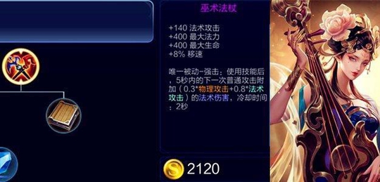 最后一件装备,就是巫术法杖,这件装备几乎没有英雄会出。因为对于法师英雄来说,只需要释放技能就可以了,不需要用普攻来进行消耗。但是,对于杨玉环来说,却是非常需要巫术法杖的,而且是最佳首选装备。因为杨玉环的被动普攻配合巫术法杖的被动,可以打出成吨的伤害,试过的小伙伴都说好,而且契合度是100%哦。