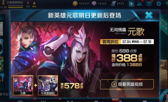 随着新赛季开启新英雄也将上线,元歌已经是差不多隔了一个月才出的新英雄了,这个操作难度操作非常高的一个英雄明天开始估计又会创造出很多奇异的玩法了。原本还以为上线能改为庞统,现在看来元歌的名字是不会在改了,还有就是不知道什么时候有消息称庞统上线水晶商店,如今新英雄基本都是金币出售,估计水晶商店出新英雄是很难,但是新皮肤倒是有可能。