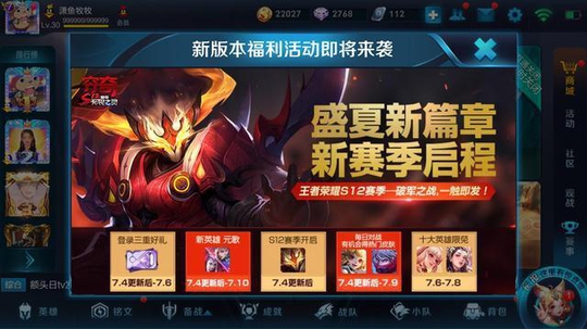 王者荣耀:新版本福利活动预览,S12赛季更新送大量钻石