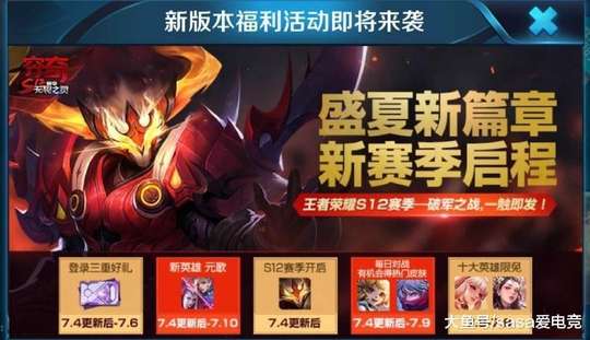 王者荣耀官方在昨天的时候已经正式的宣布S12赛季在7月4号的时候将开启新的赛季。在今天的时候,游戏海报也介绍了一些S12赛季的详情。