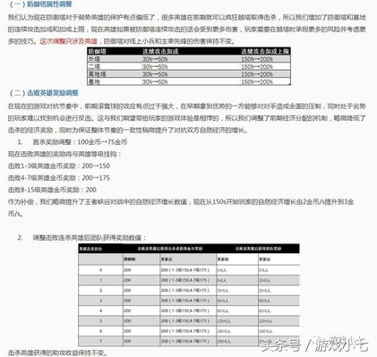 内容5:防御塔连续攻击力加强,击杀敌方英雄的金币奖励也被降低了很多,小兵、超级兵、主宰先锋,集体在比赛的15分钟后加强提升生命值,比赛持续到30分钟后,这些怪的生命值加强的更多。