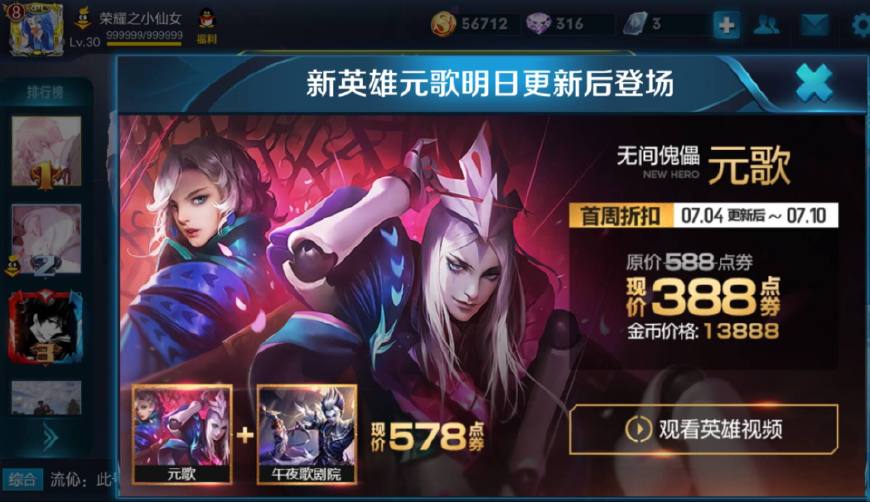 那么。元歌首次上架是13888金币出售,皮肤是午夜歌剧院,原价588点券,首周折扣388点券出售。据可靠消息,元歌是有九个技能,作为一名刺客英雄,这么多技能操作起来确实有点复杂。元歌目前具体是怎样的打法,咱们后期看看大神是怎么操作的。