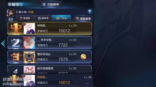 而且上个赛季他的刘备双国服最强战力排名第一。都达到了10000分。