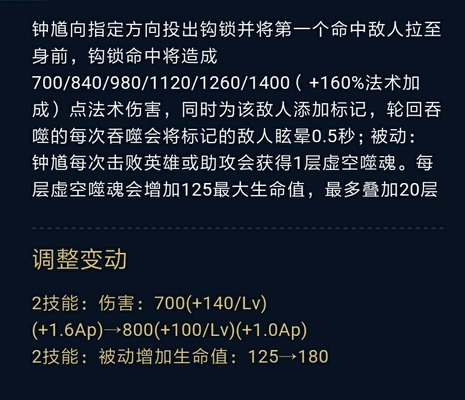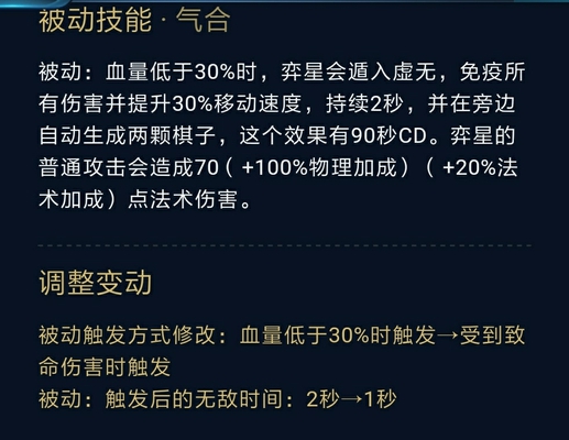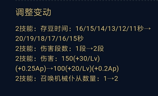 增加了被动和一技能的伤害,提高了二技能被动的生命成长值。