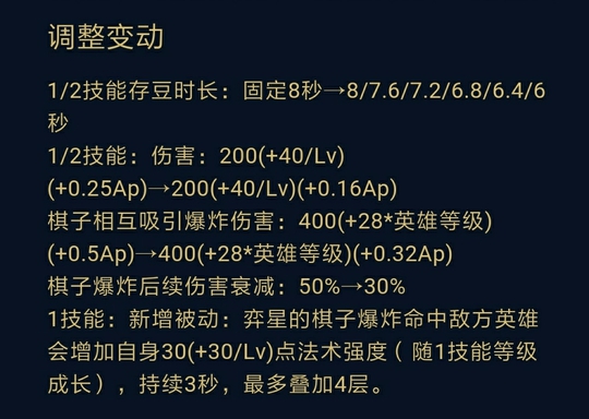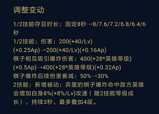 一二技能cd降低,增加了法强和攻速成长,ad攻速流弈星也有可观的法强了!