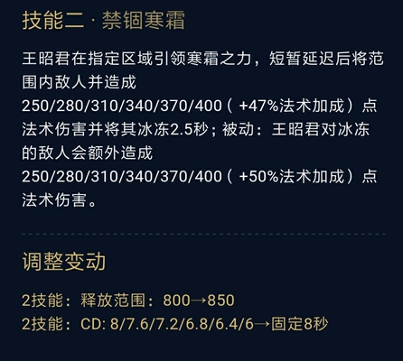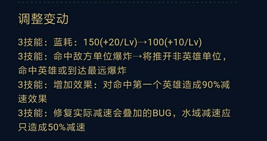 施法距离全面降低,敌人被绑可移动距离变大,整体削弱