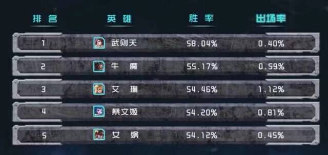 hello~大家好,我是荣耀王者小仙女。王者荣耀S11赛季已经结束了,S12赛季今天也上线正式服。那么在S11赛季中,哪些英雄在峡谷中胜率最高呢?在此天美也是算结合了全网统一出来了81个英雄的胜率,其中排行前5的英雄,肯定会让人出乎意料,下面我们就来看看S11赛季胜率排行前5的英雄吧。
