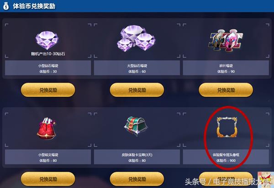 下面的这些道具,是要通过体验金币兑换的。30体验金币可以兑换小型钻石福袋,能随机兑换到10-30个钻石。60体验金币可以兑换大型钻石福袋。90体验金币可以兑换到碎片福袋,包括英雄、皮肤碎片。80体验金币,可以兑换小型铭文福袋和3天的皮肤体验卡宝箱。900体验金币,可以兑换到体验服专属头像框。这款头像框还是很漂亮的,也算是比较稀有的,因为体验服玩家并不多,所以正式服拥有的玩家并不多。