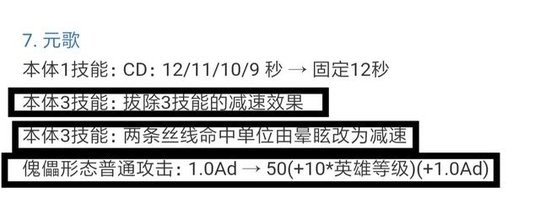 可以看到的是相比视频中那个见谁秒谁的元歌,现在的元歌 控制、爆发、输出能力都有所下降 ,唯独增强了傀儡的基础攻击力,但是元歌靠傀儡去打人吗?不,顶多清清兵,恶心恶心对手罢了。 这样一来,用削弱过后的元歌去按照以前的打法去适应,不得不说是有些勉强。