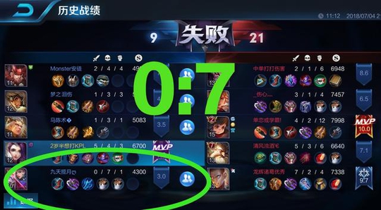 果不其然…0-7了解一下,这17.8%的扛伤完全是拿命换的啊…要知道这局排位是钻石二,也就是S11赛季的王者局,虽然阵容拿的很随意但打出如此尴尬的数据和输出也是令人大跌眼镜。