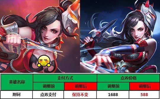 如上图,阿珂在当时名字还叫荆轲的时候,暗杀可是一流的,一步杀一人啊,分分钟5杀,这么强力的英雄,在2015年的时候,当时的英雄价格也是非常之贵,高至1688点券,不过这么强力的英雄,当时也有很多人购买的。不知道有没有小伙伴在当时花1688购买了这个英雄?