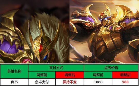 如上图,典韦在当时可是非常之牛的,可以说是当时的超级热门英雄,跟当时的李白、韩信一个级别,传奇一般的人物,在当时,典韦的英雄价格也高达1688点券,都可以抵得上现在的一个传说皮肤了。贵得不要不要的。当然现在的典韦也很强,不知道是不是因为S12赛季是典韦的皮肤赛季的缘由?