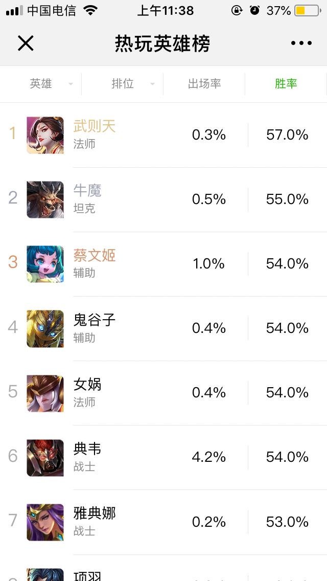 但其实武则天的出场率已经有提升了!因为之前只有0.2%!现在已经有0.3%!ban武则天的基本很少,所以出场率低是因为拥有的人少。现在明显就是越来越多的人在买武则天,天美都快笑死了。