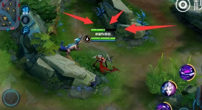 可以看到,这两个血条上面是本体的血量,正在泉水中慢慢回升。等回城的真身回满血后再按下4技能,真身瞬间从泉水回到野区中!