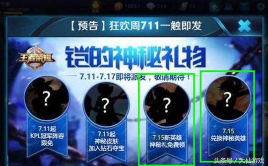 其次,7月11日以及7.15日官方活动有惊喜哦,7.11将会有一款神秘皮肤上架到钻石夺宝商城,而这款皮肤是新皮肤,在其他地方没有获取途径,另外的15号的兑换神秘英雄也是非常值得关注的,因为至今为止官方还尚未透露是用什么物品进行兑换,可能是参与活动宝箱也说不定,不过万一是和钻石相关的怎么办呢?如果现在就把钻石花完,不就白白浪费了一次免费拿英雄的机会了吗?