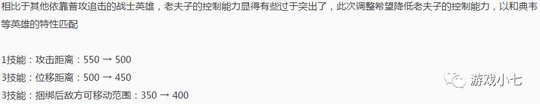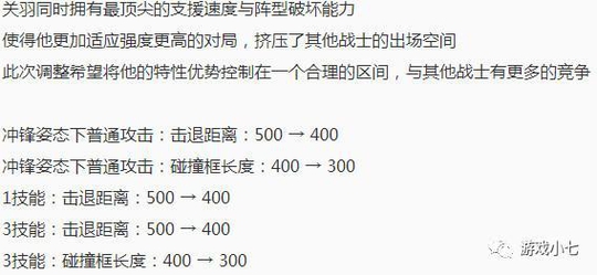 关羽:一直以来,算是峡谷里最独特的英雄,需要骑着马,到处溜达,利用马儿的冲刺,达到技能的攻击效果,但S12赛季关羽也被天美削了一刀,骑马在冲锋姿态下,普攻击退距离被削100点,普攻的碰撞框长度也削了100点,1技能冲锋姿态下击退距离削了100点,3技能冲锋姿态击退距离也削了100点,3技能的碰撞框长度也被削了100点,除了2技能没削,关羽连普攻撞人都削了,这英雄是越来越难玩了,说不定那一天关羽被重做我也不会很惊讶。