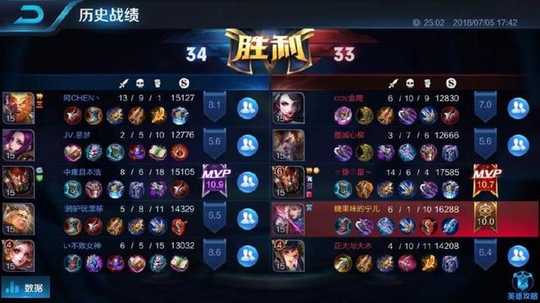 首先我们先看看看这局双方的战绩,两边34比33,实力悬殊都差不多。时间稍微有点小长,打了25分钟。那么这局这位玩家的元歌打了个6比1,助攻10个,还获得了金牌的称号。这是目前为止小黑龙见过把元歌玩得没有争议的一局排位赛。可是接下来却眼前一亮~