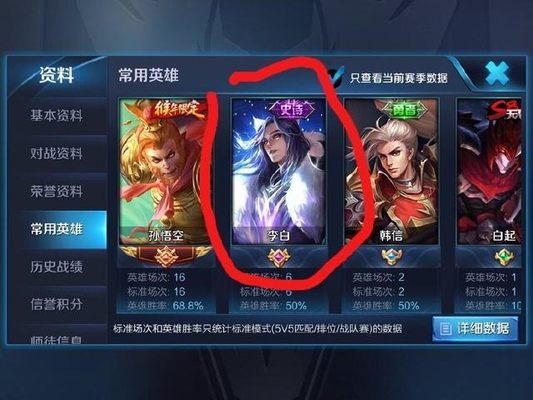 首先我们从这位玩家的常用英雄里面看到的千年之狐跟我们李白界面的千年之狐是毫无差异的,这样看大家完全看不出来李白的千年之狐有所改变,可是接下来看完这张图大家就明白了。