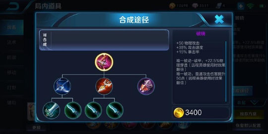 。鲁班后期伤害溢出,就是因为破晓的出现。破晓现在是射手必出的装备,完全取代了碎星锤的位置。而且他的合成也非常平滑,穿云弓让鲁班在前期就拥有22.5%的穿透效果,速击之枪和暴击拳套性价比也很高。