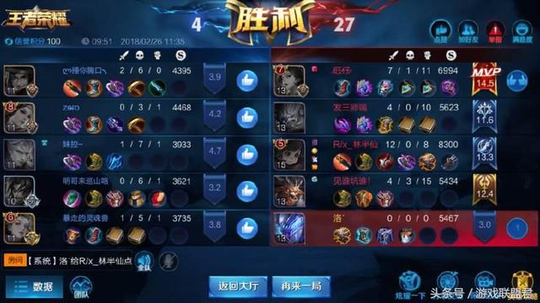 但是还是有部分同学是划水上的王者,比如这把比赛,虽然赢得了比赛的胜利,但是白起的作用相当小,不仅没有击杀数,就连助攻数都没有,己方队伍击杀了27个人,居然一个助攻都没有,可以说非常划水了,而这些玩家能够“躺”上王者,也是有一定的运气成分的。