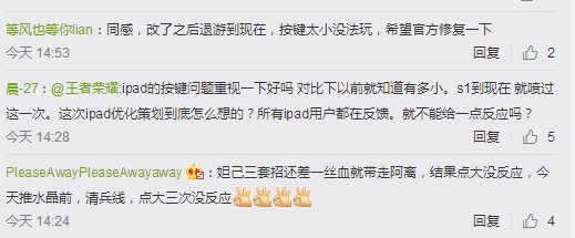 另外,我们在新版本公告里也发现《王者荣耀》对iPad等大屏设备进行了UI的优化,并且玩家可以自主对摇杆和设备的边距进行调节。但从一些玩家的建议上来看,大屏设备的按键过小导致的技能使用失灵,可能才是目前最紧要的问题。