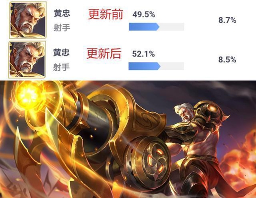 新赛季中只有公孙离一个射手被调整了,而黄忠丝毫未动,不过他的排位胜率却出现暴涨现象。目前排位胜率已达到52.1%,仅次于孙悟空的排位胜率,是所有射手中排位胜率最高的一个,已超越了鲁班七号、后羿、成吉思汗,但相比鲁班七号和后羿,黄忠的出场率略低。