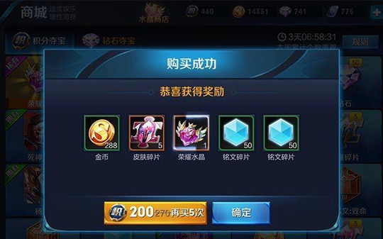 如上图,这位玩家是在早上8点钟的时候,记住,一定要北京时间整点哦,在整点的时候,立刻来一次5连抽,有很大几率会抽到荣耀水晶,无论幸运值有多少。这个听起来有点扯,难道是因为8会发吗?不过这位玩家就是这么抽到的。