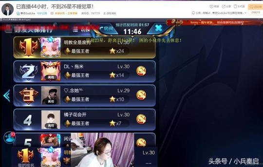 这件事情,小兵昨天早上跟进了一次,当时寒夜是15星,下午的时候小兵又跟进了一次,寒夜是16星,到了7月7号的早上,寒夜仍然在打,已经到了24星,但现在综合用时已经44个小时,超越了大锤当初44个小时不下播的纪录。