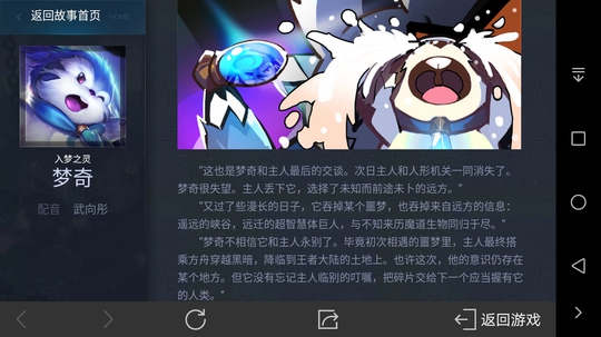 在故事中梦奇一族靠吞噬噩梦为生,他们也喜欢在别人的美梦里游玩,算是那种人畜无害的可爱生物,而且梦奇是会认主人的,我也想养只梦奇呀,这样就不用害怕做噩梦了