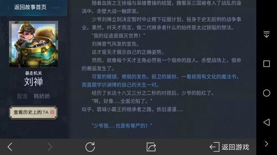 虽然他在故事中是一个天才,但是他毕竟还小,有小孩子该有的天真(从他那句毁灭世界可以看出来)而且他的实力在所有英雄中是偏弱的,当然这里我要说一个有趣地方,刘禅与安琪拉以前其实是cp,所来官方改成了安琪拉与亚瑟,蔡文姫与刘禅,但刘禅的故事还没改过来