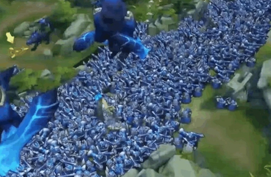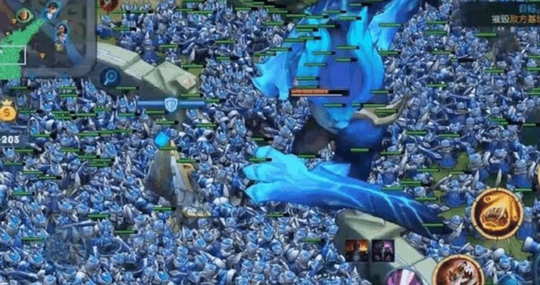 这是在训练场里发生的离奇事件,这名玩家不知如何触发了一个bug,然后小兵就源源不断的涌了出来,整个画面都挤满了这些蓝色的家伙,密密麻麻一片让人看的密集恐惧症都犯了。据说整个峡谷里出现了3000个小兵,这么算下来要是进行攻击,那么可以瞬间推倒了一座又一座防御塔,秒拆敌方水晶。