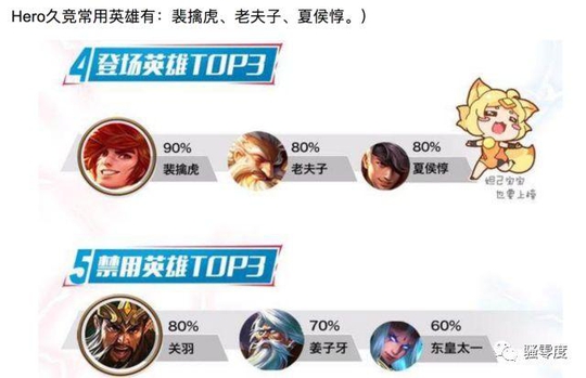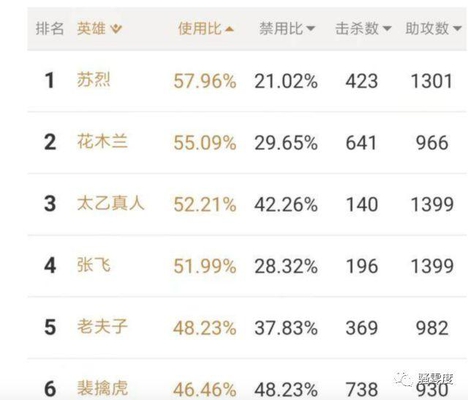 不过我们还要考虑ban位,看过常规赛的小伙伴都知道,马可波罗、公孙离基本一直都是被ban的,裴擒虎、李元芳的出场率反而更高点。