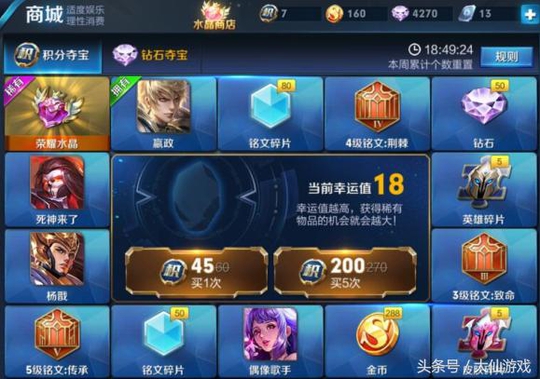 其实想要花少代价获得荣耀水晶正常渠道确实挺难的,因为当你抽取次数少的时候幸运值也是很低的。积分商城的规则便是幸运值越高抽到荣耀水晶和稀有物品的几率才越大。所以了,如果想要用最低的代价得到高额的收益当然离不开一点小辛苦啦,需要大家去卡系统的时间点抽取。