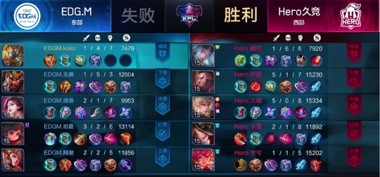 而第三场又是hero久城屡建奇功,拿下MVP,输出占到团队的32%。
