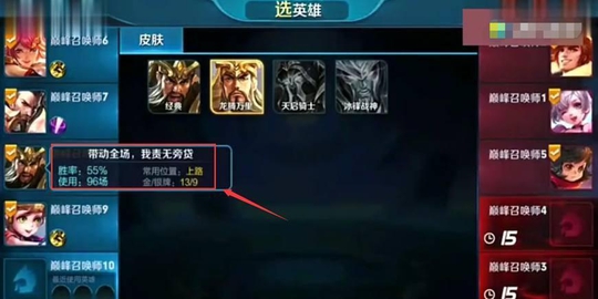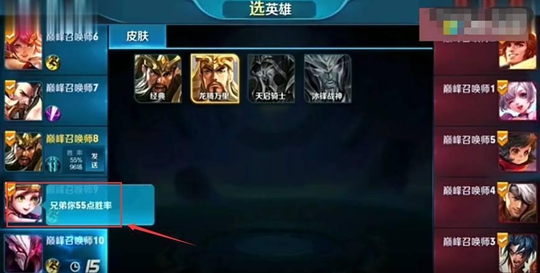 在游戏的挑选英雄的过程中,剑仙就选择了关羽。然后剑仙表示,在对局里面,还是要秀一波胜率的。于是乎剑仙就在巅峰赛上面,秀了一下,自己百分之五十五的战绩,而且还是反复秀了一波。