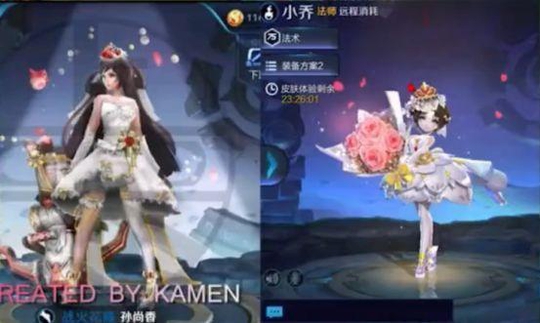 纯白花嫁在小乔身上感觉非常小巧可爱,当这款皮肤穿在孙尚香身上的时候,又是别有一番风味,小短腿瞬间化身为大长腿。
