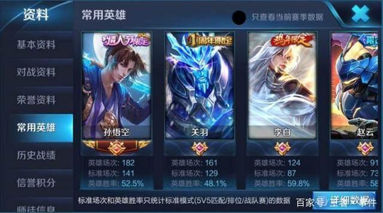 当小编点开他的常用英雄,这个玩家也算是比较有钱吧!不过不知道怎么来的钱。他的英雄皮肤大多都是比较贵的皮肤,从这样样式来看应该是V8。