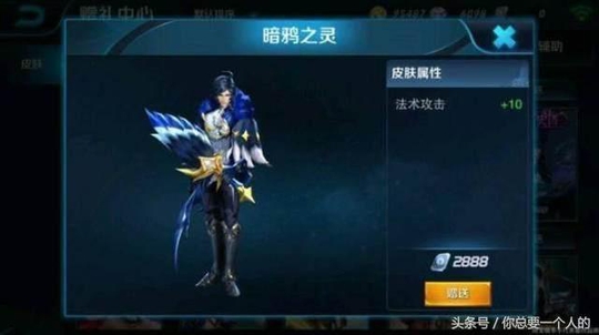 第二款:暗鸦之灵,这款皮肤有没有玩家知道呢?如果是新玩家,一定会认为这个是诸葛亮吧,可是诸葛亮又是后面才出的英雄,其实这个皮肤就是诸葛亮的皮肤,是之前诸葛亮就已经上线过体验服的,可是不知道什么原因下架了,这款皮肤也是随着绝版了,有没有S0的老玩家见过呢?不过如果这款皮肤要是能出来,一定能卖出个好价钱吧!这么也算诸葛亮最帅皮肤吧!