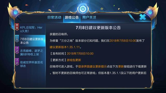 于是天美就在6.8号在正式服临时更新bug!值得一提的是这次更新并非强制性的!