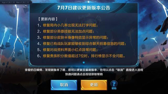 而是由玩家自己选择更新!天美还美其名曰建议“更新!”