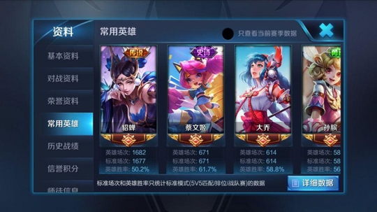 作为世界杯系列皮肤的拥有者,其CP皮肤刘禅的天才门将也是即将上线正式服!而在之前,蔡文姬的回血并不是很强,但是二技能弹弹弹却足以恶心敌人,因此如果是辅助边路的话,还是不要抢他的经济以及经验为好,出一个学识宝石在草丛之中猫好,时不时给敌方英雄丢一个弹弹乐,并且时刻关注小地图,中路或者打野需要帮忙的时候立即赶过去!而后期团战的时候肯定是跟着脆皮,不管是大招还是一技能甚至是救赎之翼,在关键时候都是可以将他们从生死线拉回来,从上图可以看出,该玩家在排位赛中经常玩3个辅助,分别是蔡文姬、大乔、孙膑,总共玩了1865场,蔡文姬胜率61.7%。